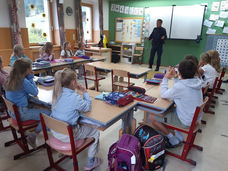 Wie jedes Jahr besuchte uns auch heuer wieder Herr Inspektor Tom Maier von der Polizeiinspektion Mauterndorf. Es ging um die Verkehrserziehung, welche die pädagogische Vermittlung von Verkehrsregeln und die Erziehung zu einem sicheren und angemessenem Verhalten im Straßenverkehr fördert. Es sollten Verkehrsunfälle vermieden und die Verkehrssicherheit dadurch erhöht werden.